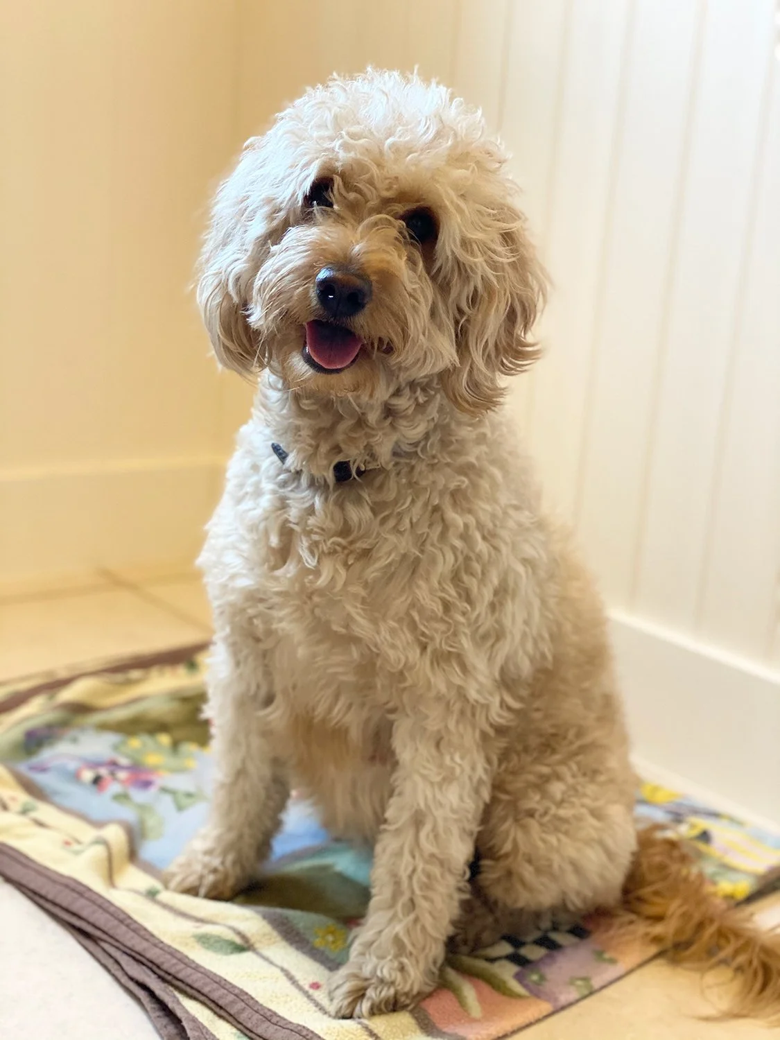 From her Guardian family: Willow is our F1 Mini Goldendoodle that will be a mom of F1b Micro Mini Goldendoodles beginning in 2020-2021. Willow is an extremely loyal and relaxed dog. She enjoys just being near us. She is incredibly patient with little kids jumping and playing around/on her. She loves when new people come to visit and she plays great with our other dog. Willow’s temperament makes her an incredible family dog. She is trust and loving and we can’t get enough of her snuggles! (I believe she is about 28 lbs)